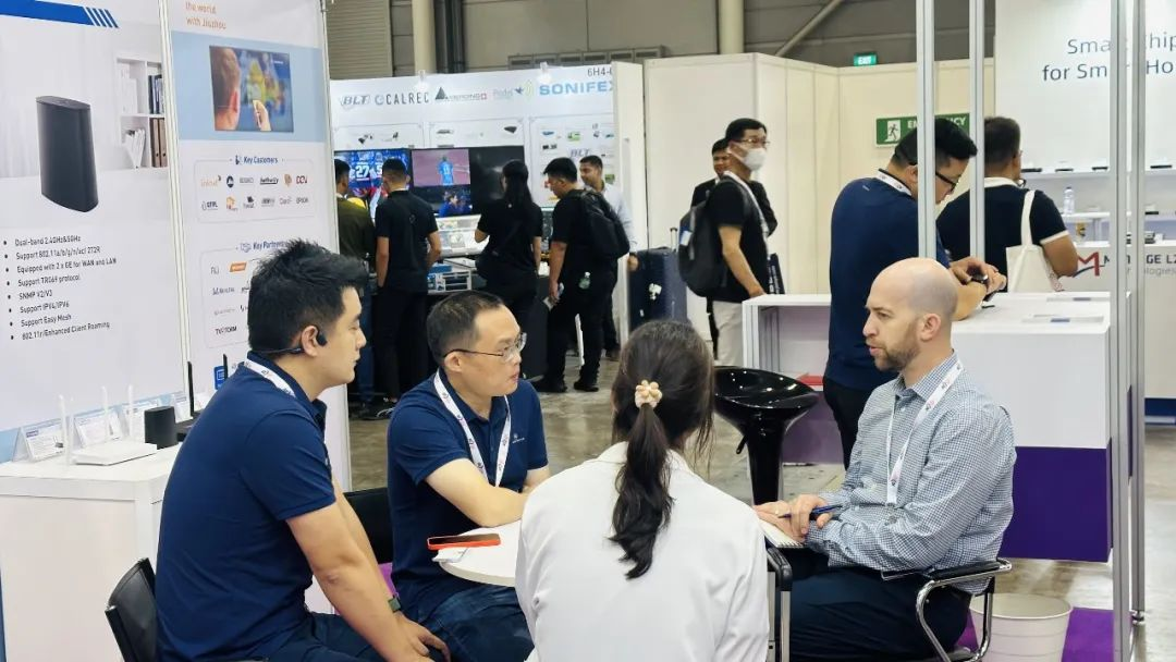 6月7日-9日,Asia Tech x Singapore新加坡科技展在新加坡博览中心隆重举办,公司副总经理夏兵及销售团队携深圳九洲电器自主研发的智能电视终端和网络接入设备5G CPE,Wi-Fi 6路由器,GPON&OTT家庭网关,4K AI STB等产品及解决方案亮相狮城,秉承“用九洲看世界”(Watch the world with Jiuzhou)的品牌理念,也承接着本次科技展致力于“重新定义技术,共创美好未来”的美好愿景。
