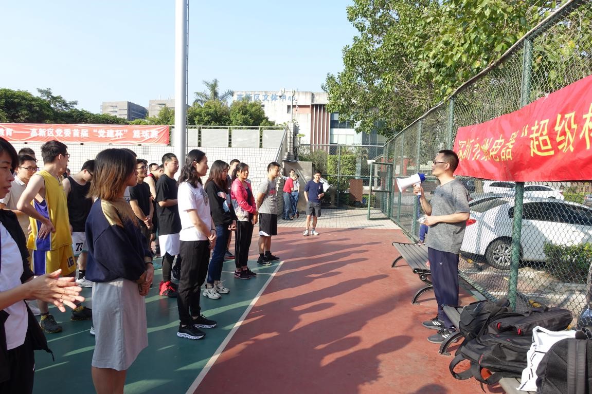 11月16日九洲“超级杯”篮球赛在深圳市南山区总裁俱乐部篮球场正式拉开帷幕。此次“超级杯”一共有八支队伍参与,分别是深九发、先锋队、风暴队、九州传媒、智能安防队、数字电视事业部1队、数字电视事业部2队,数字电视事业部3队,共计60余人参加。