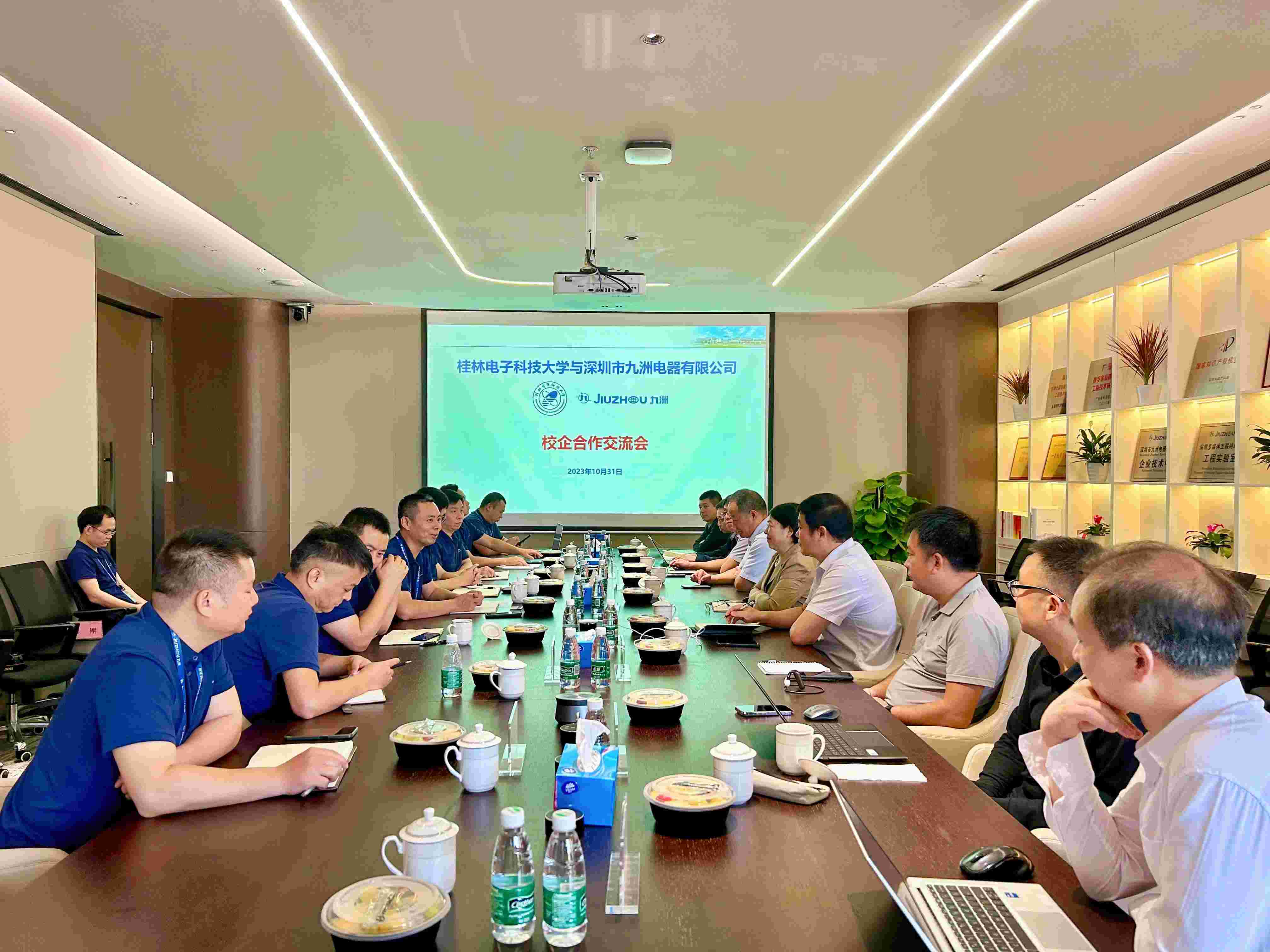 为加强校企合作交流,实现校企优势互补、资源共享,探索产教融合新模式,10月31日上午,桂林电子科技大学副校长周娅一行莅临深圳市九洲电器有限公司参观调研,并就“校企合作、产教融合”展开深入交流。公司总经理韩高典、副总经理石旭科、夏兵及桂电校友代表参加了接待交流。