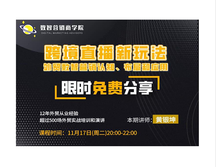 【免费跨境直播培训来了】九洲数智营销商学院与你分享“跨境直播新玩法” 破局2020