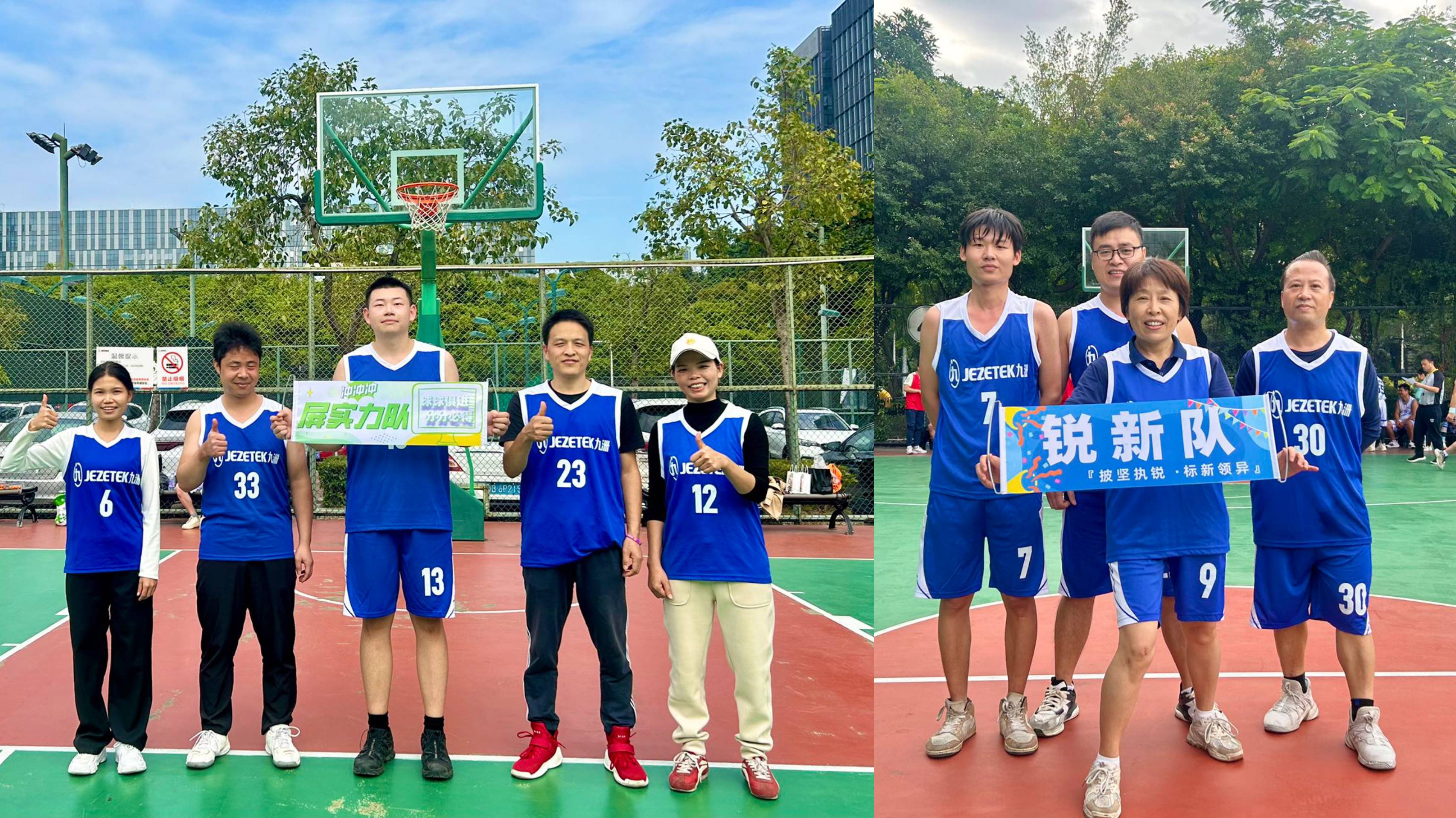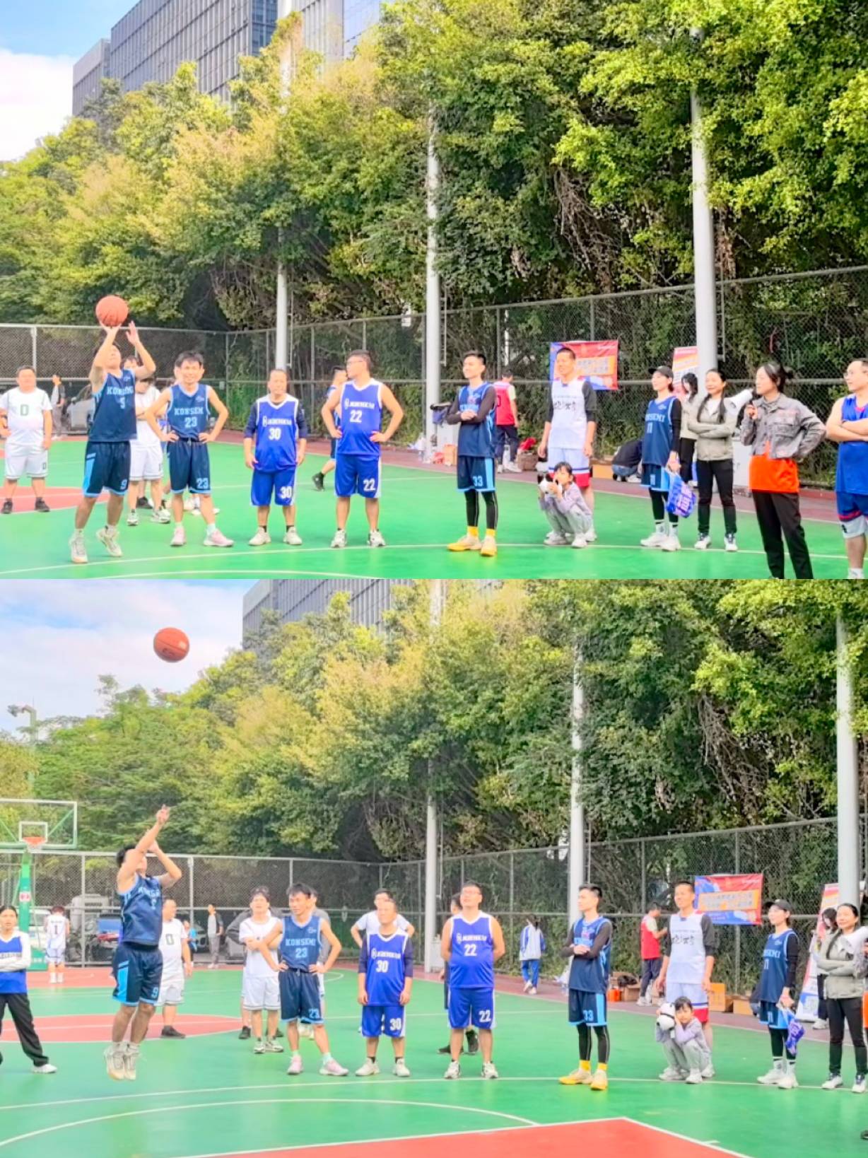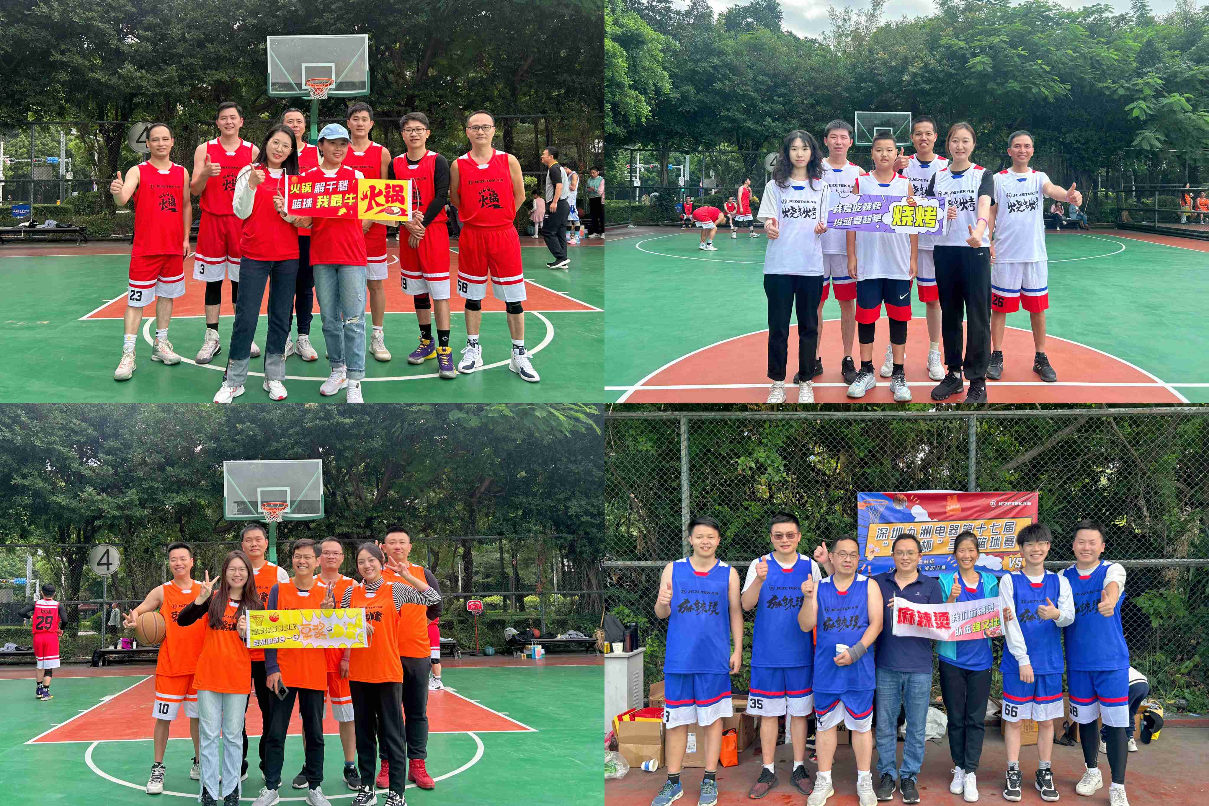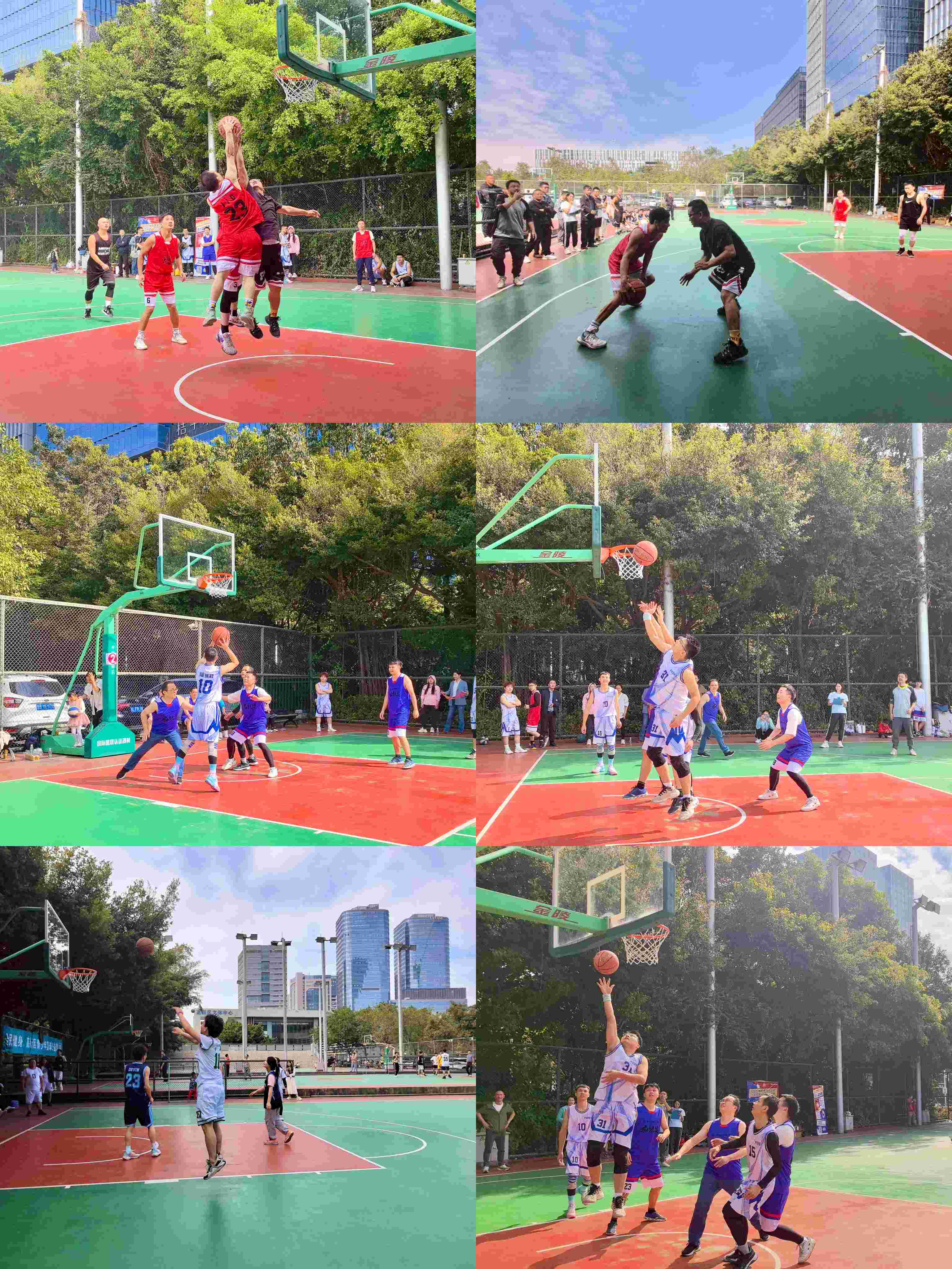 随着比赛哨声响起,篮球场即热血沸腾起,各队运动员迅速进入状态,他们全力以赴、密切配合,本着“友谊第一,比赛第二”的原则,展开力量与坚韧的对决。进攻时,健步如飞、势不可挡、投入完美三分;防守时,紧逼锁定、不遗余力,精准抢断,充分展现出精湛的球技和顽强拼搏的九洲精神。