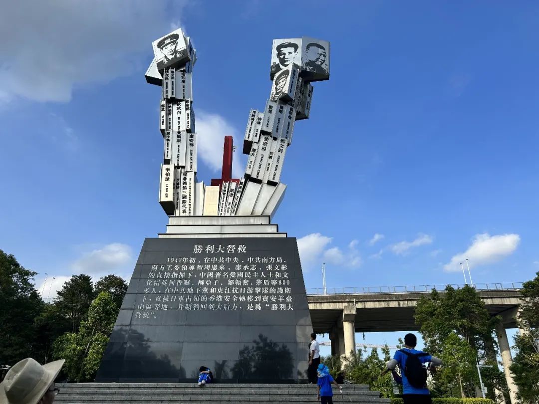 大家在“胜利大营救”主题纪念碑前合影留念,并对大浪阳台山登山广场内的红色文化景点进行了参观学习,共同重温红色革命圣地的历史。