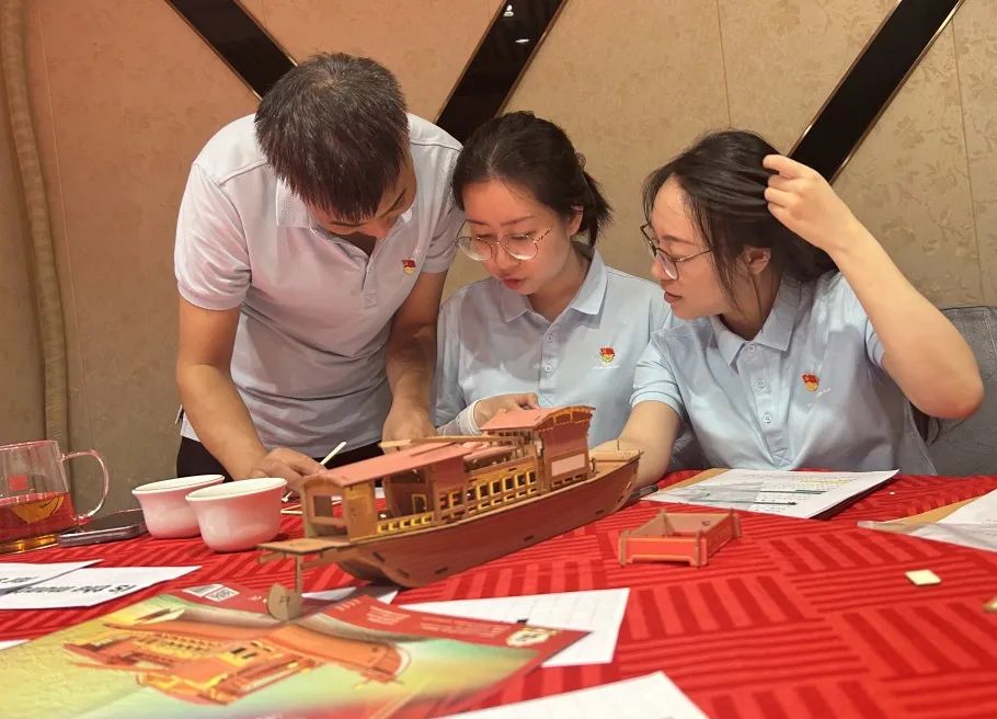 下午,党员们开始了“重返1921”红色剧本研读活动,旨在注入党史学习年轻态,解锁主题党日新模式,主要分为“星星之火-前往上海”、“七月流火-望志路106号”、“八月骄阳-嘉兴南湖红船”等内容,通过触发任务、全员解密、红船制作、剧本演绎等沉浸式体验,带领党员们穿越历史时空,走进峥嵘岁月,感悟党史,感悟红色文化,致敬革命先辈,汲取奋进力量。