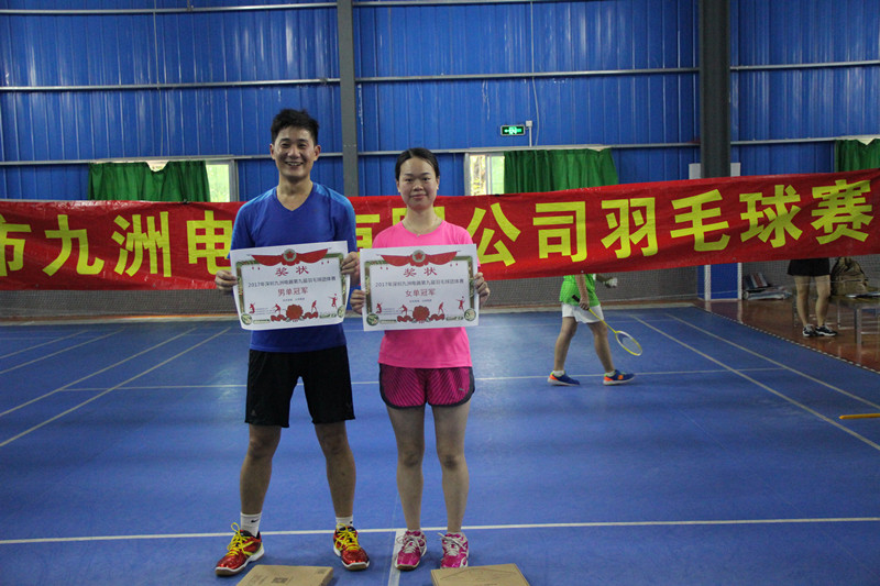 为丰富公司业余活动,活跃企业文化建设,深圳市九洲电器有限公司一年一度的第九届羽毛球友谊赛于2017年7月29日科技园文体中心羽毛球馆拉开了序幕,公司各部门职员积极参加,同时我们盛情邀请了九洲传媒、九洲控股2支队伍参加比赛,总共报名参加比赛的有11支队伍,本次的比赛分设项目有:男单、女单、男双、混双四个项目,另增加了男女MVP,表彰单打出色的选手。