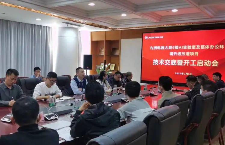 破旧立新,为改善科技创新和人文环境、增强创新意识、激发员工创新创造激情,九洲电器大厦6楼AI实验室施工现场如火如荼,发包方、施工方、监理方、设计方、造价方和物业管理等各方积极协调沟通,严格按照项目时间节点倒排工期,全力以赴推进项目如期建成。